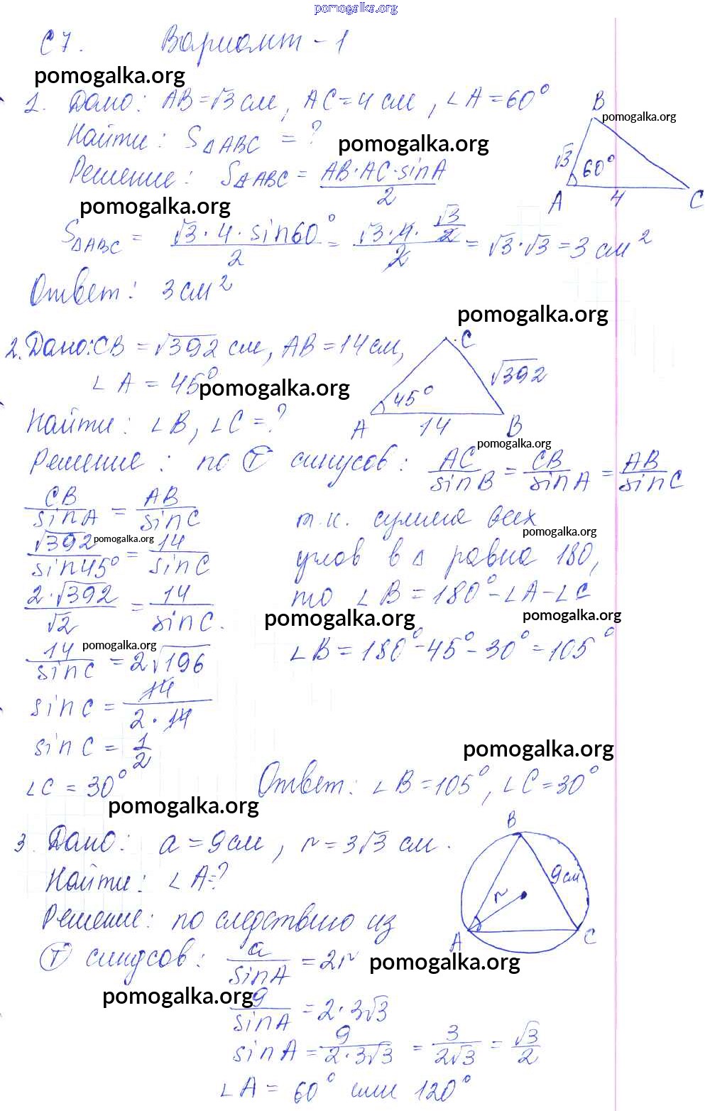 Готовые ответы - Геометрия 9 класс Контрольные и самостоятельные работы Журавлев С.Г. - ср-7. вариант к учебнику Атанасяна 1