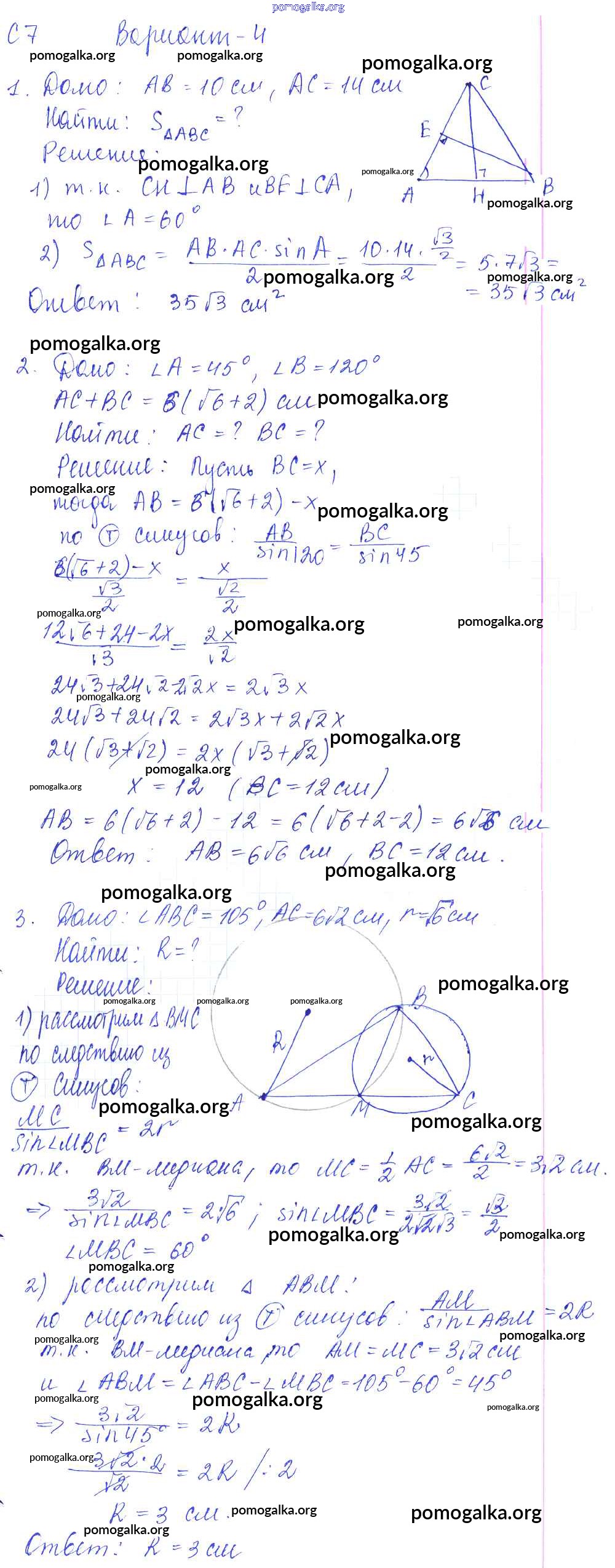 Готовые ответы - Геометрия 9 класс Контрольные и самостоятельные работы Журавлев С.Г. - ср-7. вариант к учебнику Атанасяна 4