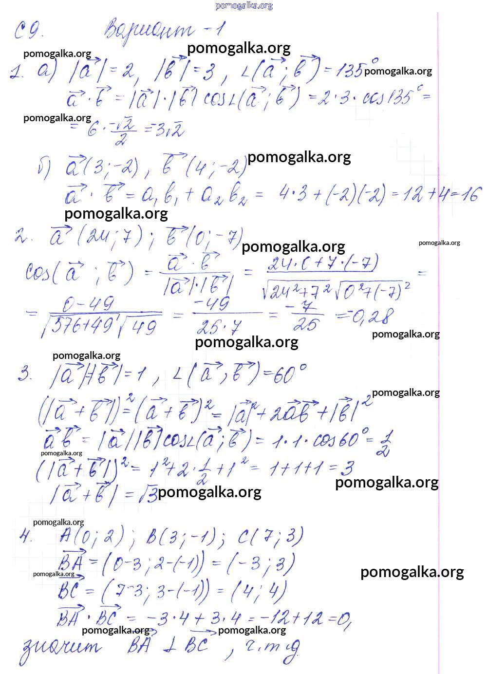 Готовые ответы - Геометрия 9 класс Контрольные и самостоятельные работы Журавлев С.Г. - ср-9. вариант к учебнику Атанасяна 1