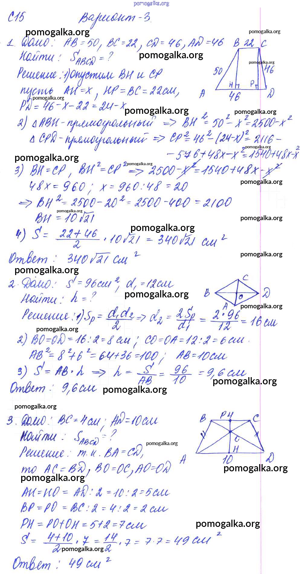 Готовые ответы - Геометрия 9 класс Контрольные и самостоятельные работы Журавлев С.Г. - ср-15. вариант к учебнику Погорелова 3