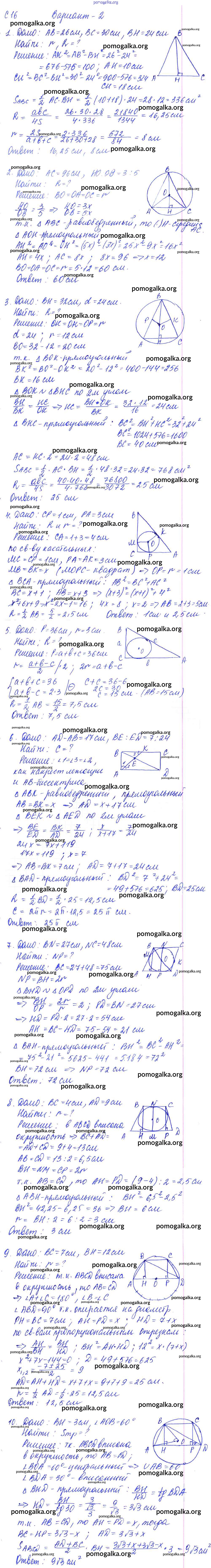 Готовые ответы - Геометрия 9 класс Контрольные и самостоятельные работы Журавлев С.Г. - ср-16. вариант к учебнику Погорелова 2