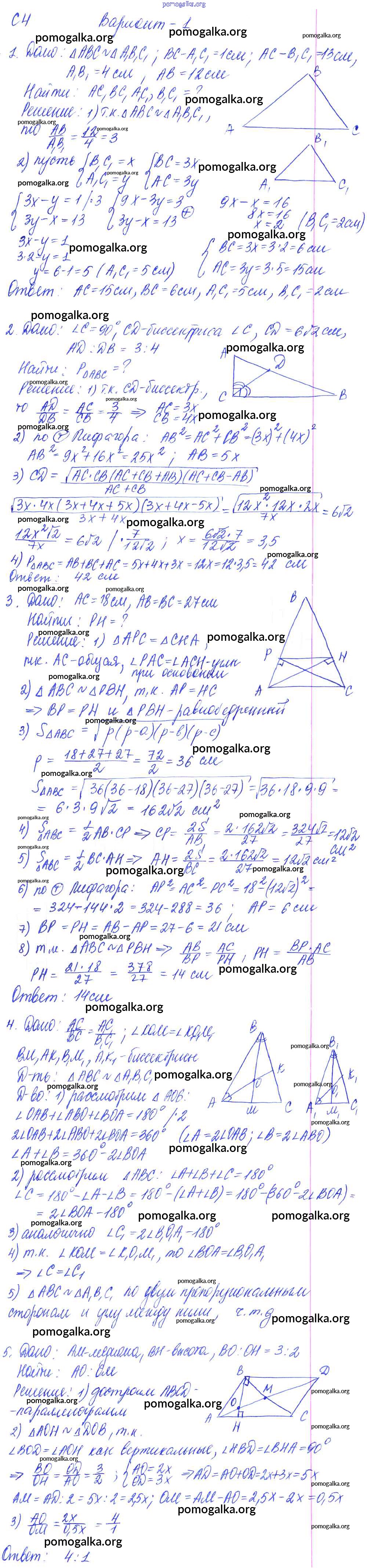 Готовые ответы - Геометрия 9 класс Контрольные и самостоятельные работы Журавлев С.Г. - ср-4. вариант к учебнику Погорелова 1