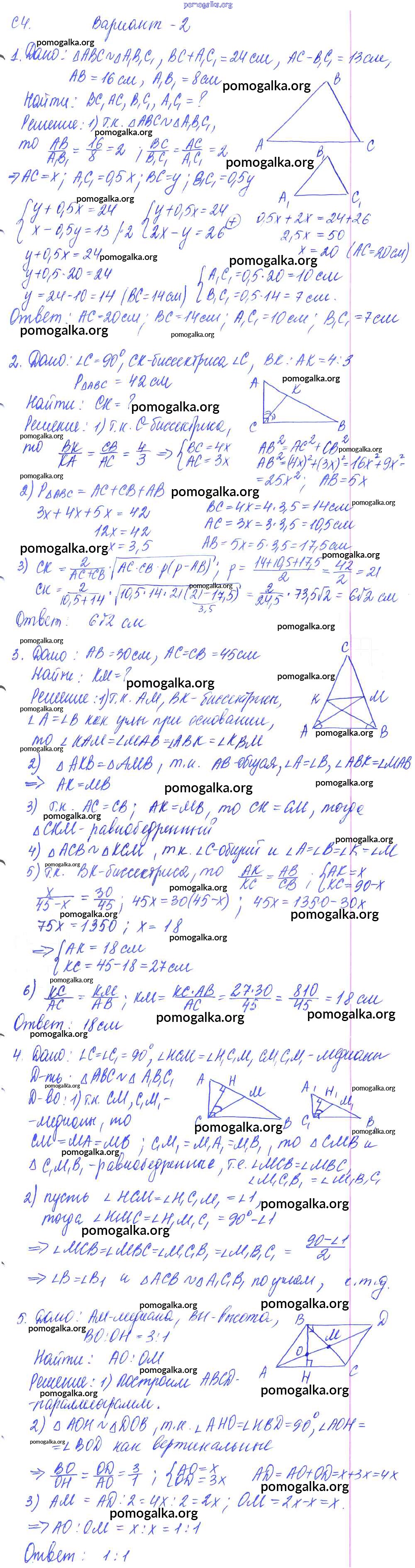 Готовые ответы - Геометрия 9 класс Контрольные и самостоятельные работы Журавлев С.Г. - ср-4. вариант к учебнику Погорелова 2