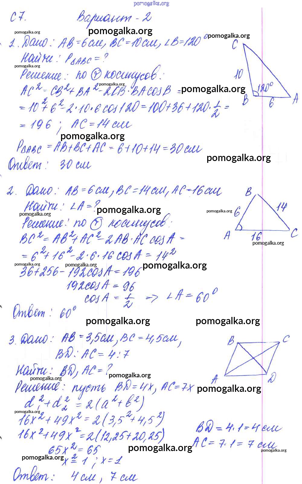 Готовые ответы - Геометрия 9 класс Контрольные и самостоятельные работы Журавлев С.Г. - ср-7. вариант к учебнику Погорелова 2