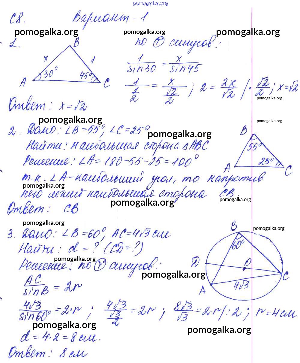 Готовые ответы - Геометрия 9 класс Контрольные и самостоятельные работы Журавлев С.Г. - ср-8. вариант к учебнику Погорелова 1