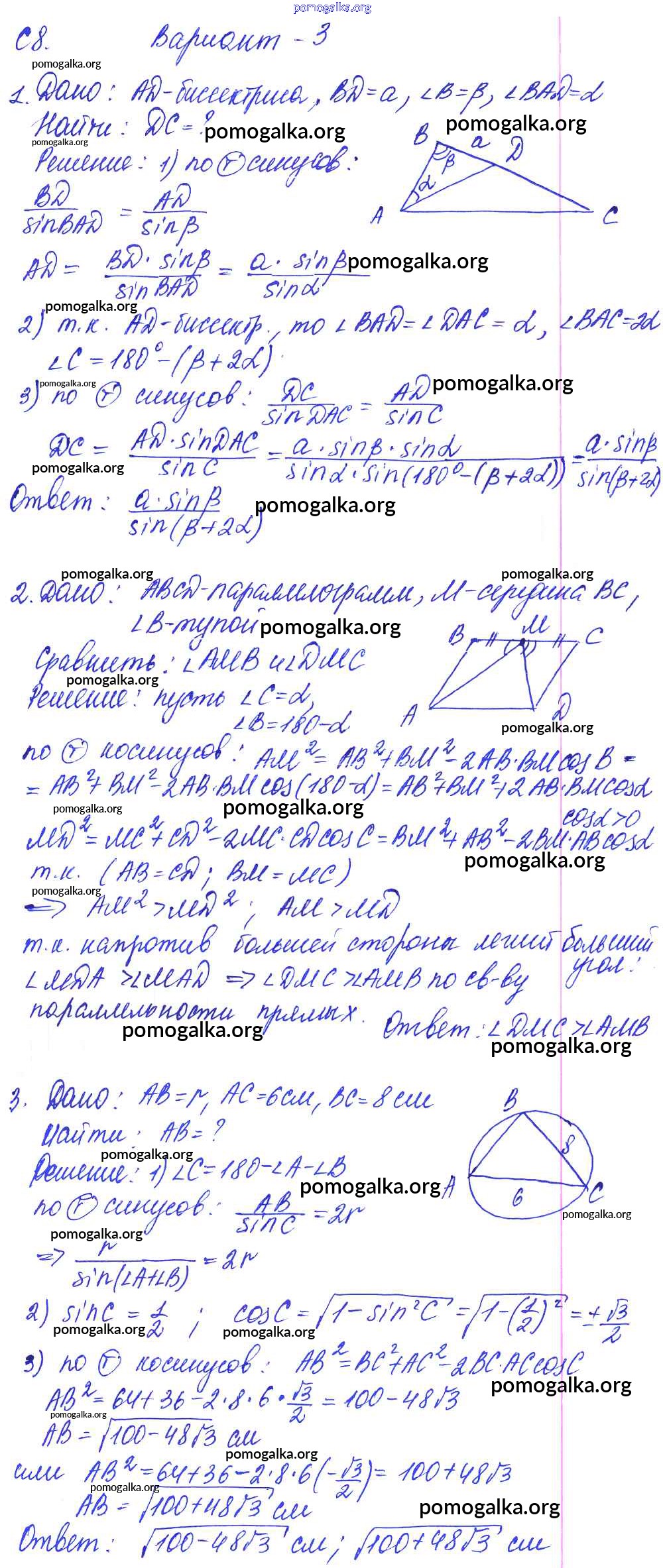 Готовые ответы - Геометрия 9 класс Контрольные и самостоятельные работы Журавлев С.Г. - ср-8. вариант к учебнику Погорелова 3