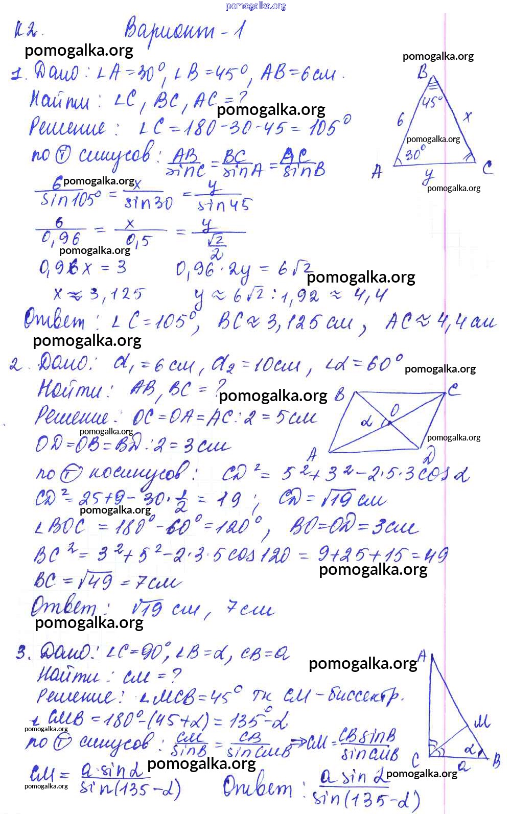 Готовые ответы - Геометрия 9 класс Контрольные и самостоятельные работы Журавлев С.Г. - кр-2. вариант к учебнику Погорелова 1