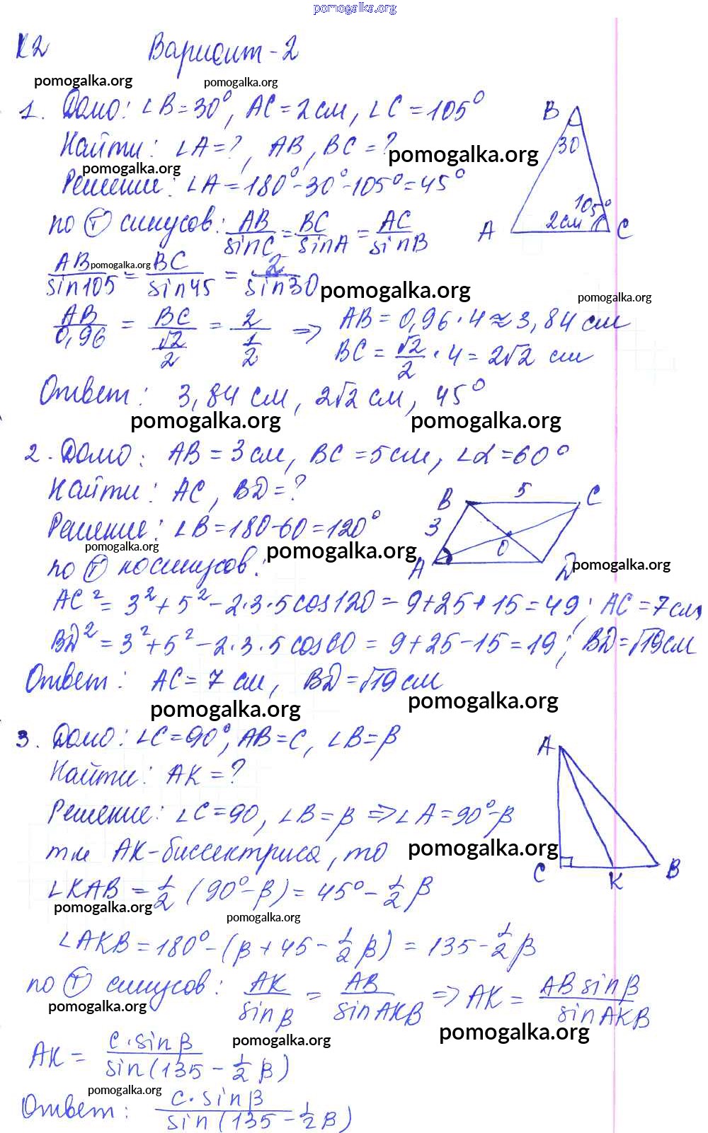Готовые ответы - Геометрия 9 класс Контрольные и самостоятельные работы Журавлев С.Г. - кр-2. вариант к учебнику Погорелова 2