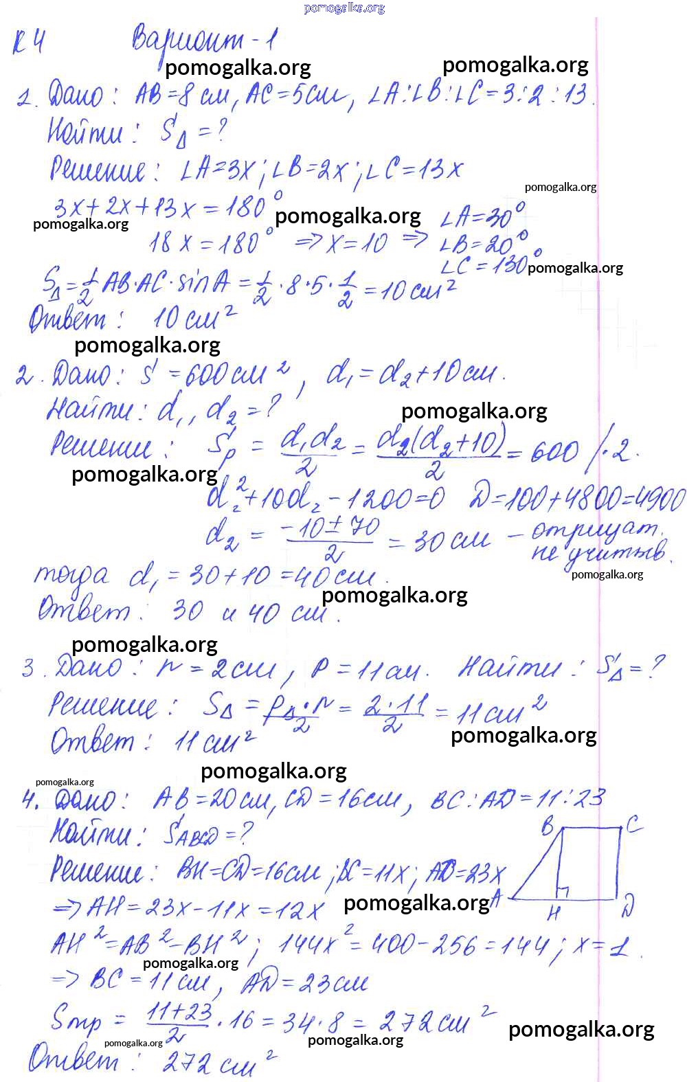 Готовые ответы - Геометрия 9 класс Контрольные и самостоятельные работы Журавлев С.Г. - кр-4. вариант к учебнику Погорелова 1