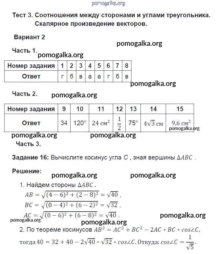 Готовые ответы - Геометрия 9 класс тесты Фарков А.В. (к новому уч. Атанасяна Л.С.) - тема 3. вариант 2