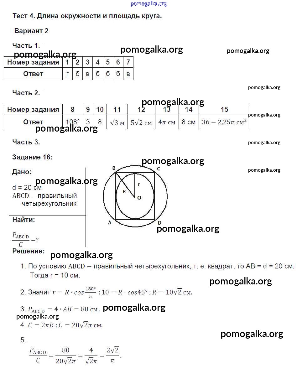 Готовые ответы - Геометрия 9 класс тесты Фарков А.В. (к новому уч. Атанасяна Л.С.) - тема 4. вариант 2