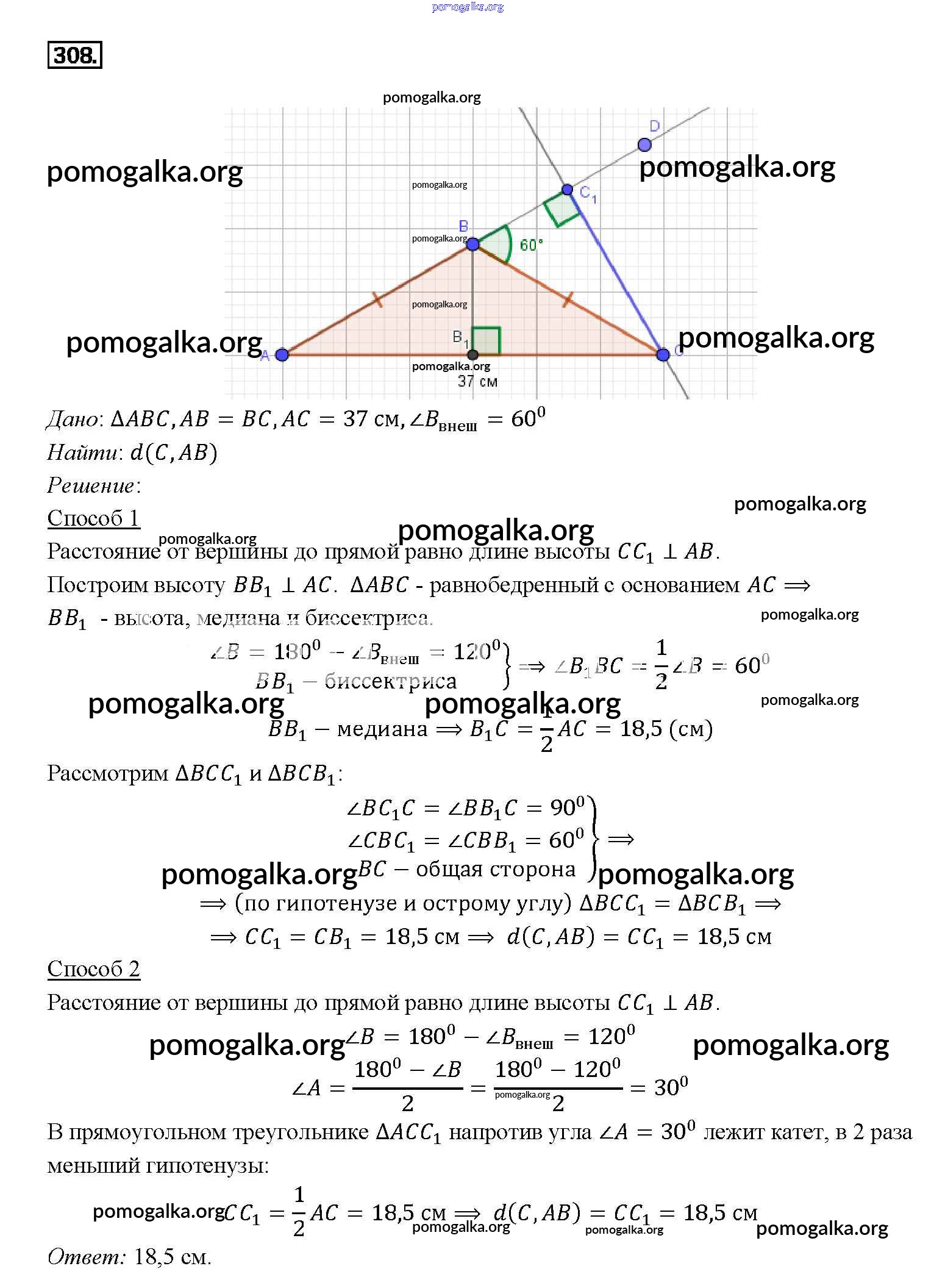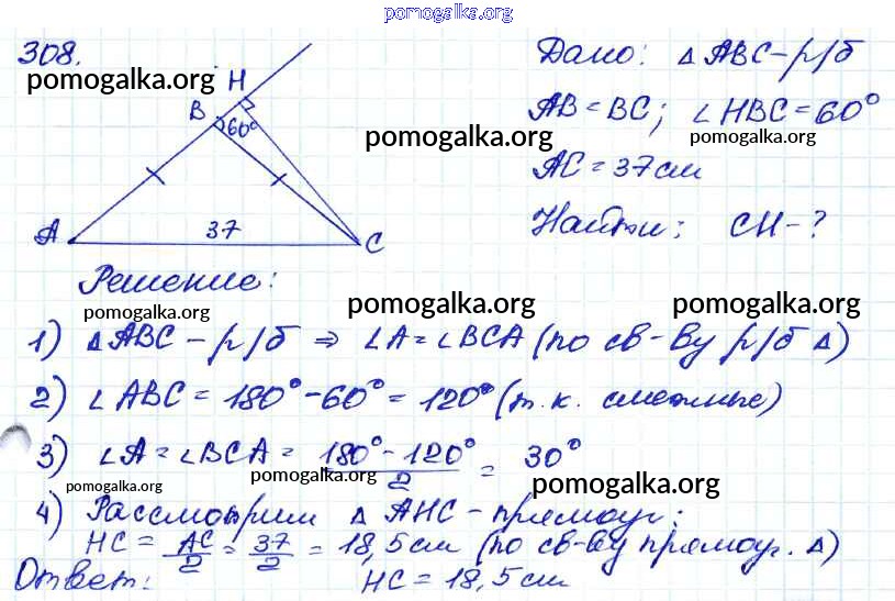 Готовые ответы - Геометрия 7-9 классы Атанасян Л.С. - задача 308