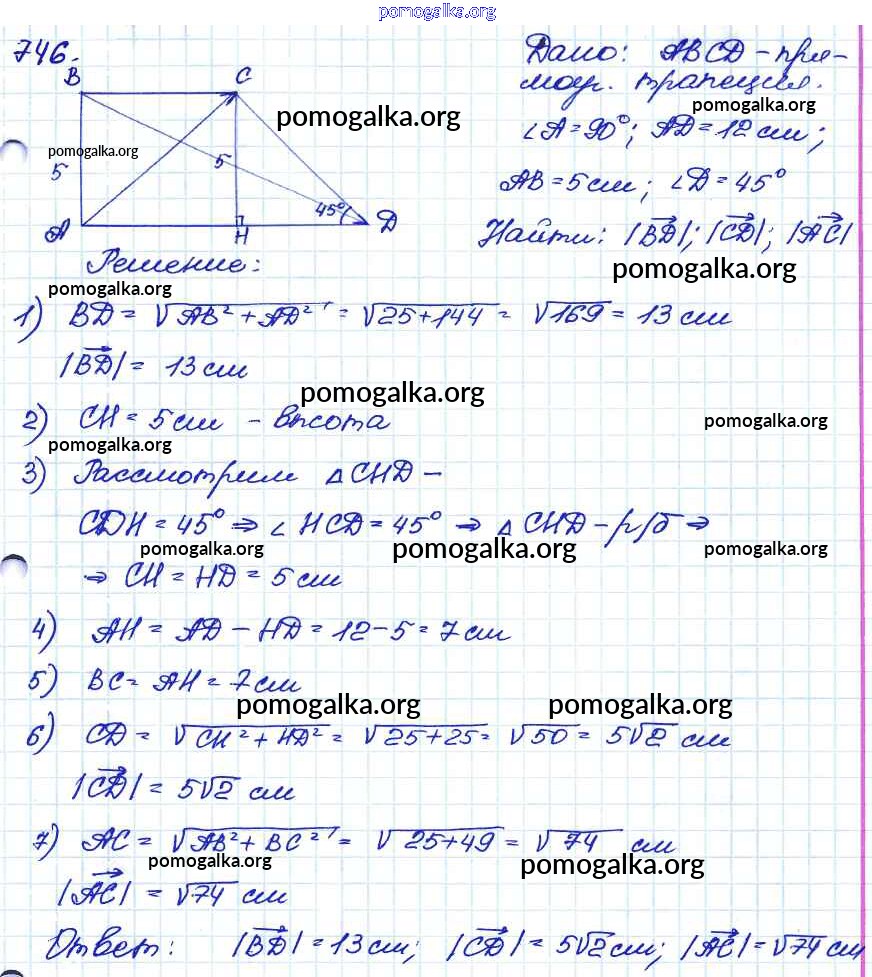 Готовые ответы - Геометрия 7-9 классы Атанасян Л.С. - задача 746