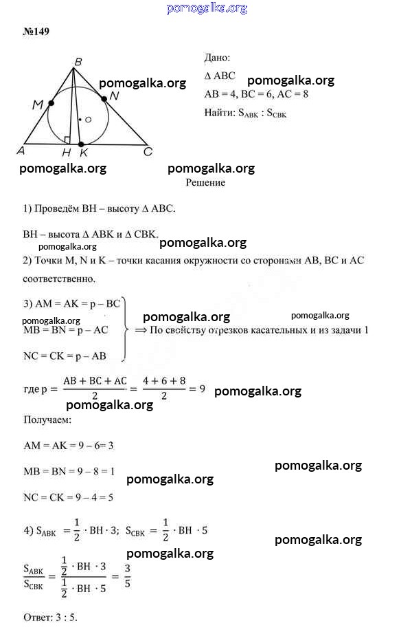 Готовые ответы - Геометрия 9 класс Казаков В.В. - задача 149