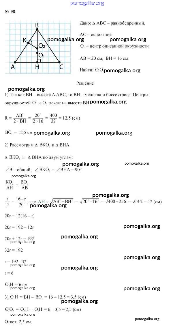 Готовые ответы - Геометрия 9 класс Казаков В.В. - задача 98