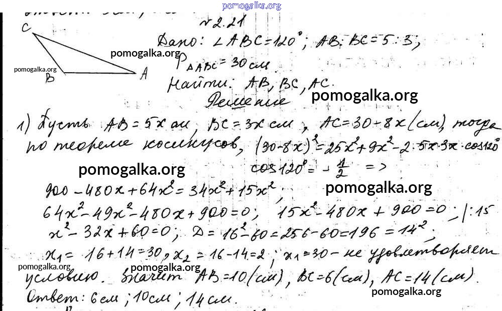 Готовые ответы - Геометрия 9 класс Мерзляк А.Г. - §2 глава 1 2.21