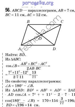 Готовые ответы - Геометрия 9 класс Мерзляк А.Г. - задача 56
