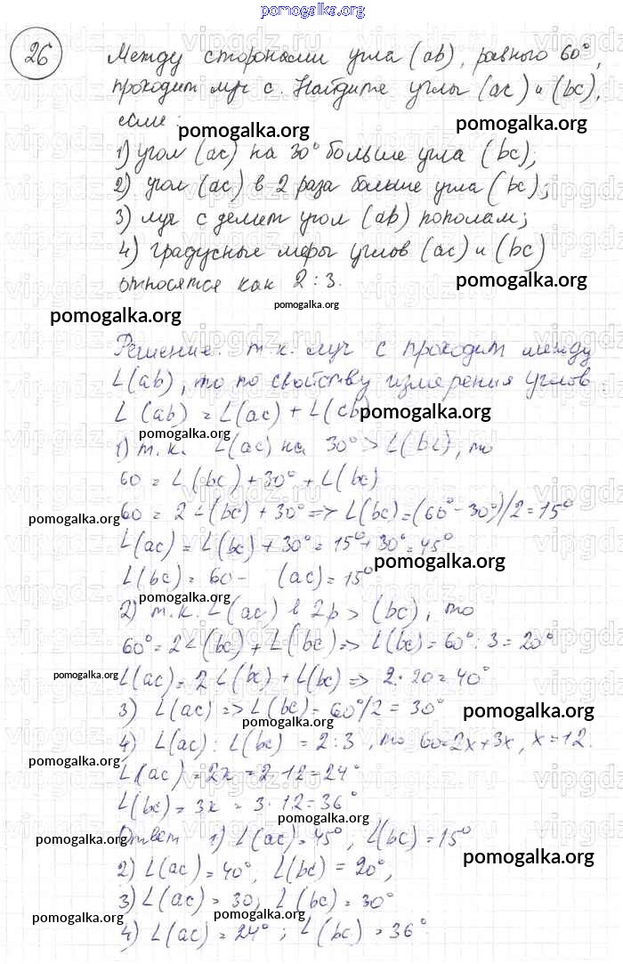 §2. Смежные и вертикальные углы №1-26