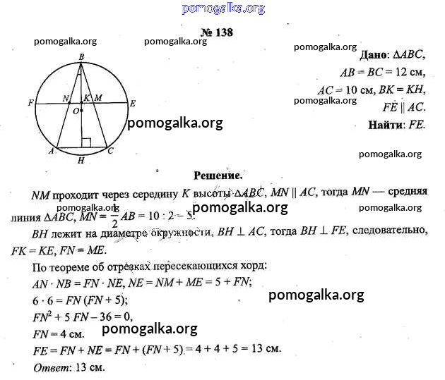 Готовые ответы - Геометрия 9 класс Шлыков В.В. - задача 138