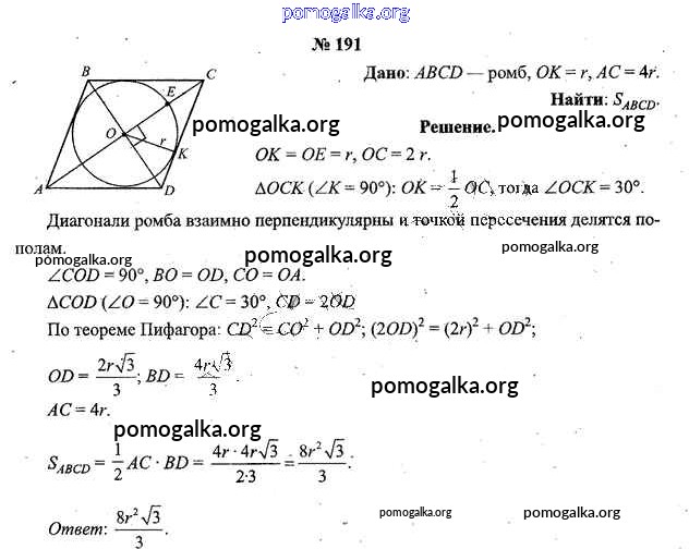 Готовые ответы - Геометрия 9 класс Шлыков В.В. - задача 191