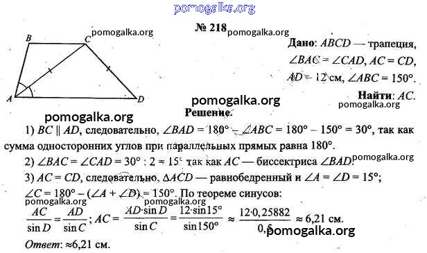 Готовые ответы - Геометрия 9 класс Шлыков В.В. - задача 218