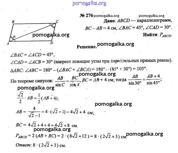 Готовые ответы - Геометрия 9 класс Шлыков В.В. - задача 276