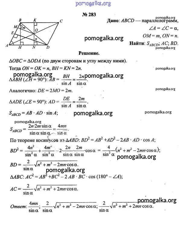 Готовые ответы - Геометрия 9 класс Шлыков В.В. - задача 283