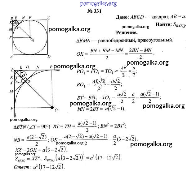 Готовые ответы - Геометрия 9 класс Шлыков В.В. - задача 331