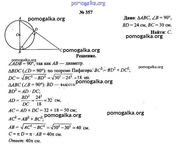 Готовые ответы - Геометрия 9 класс Шлыков В.В. - задача 357