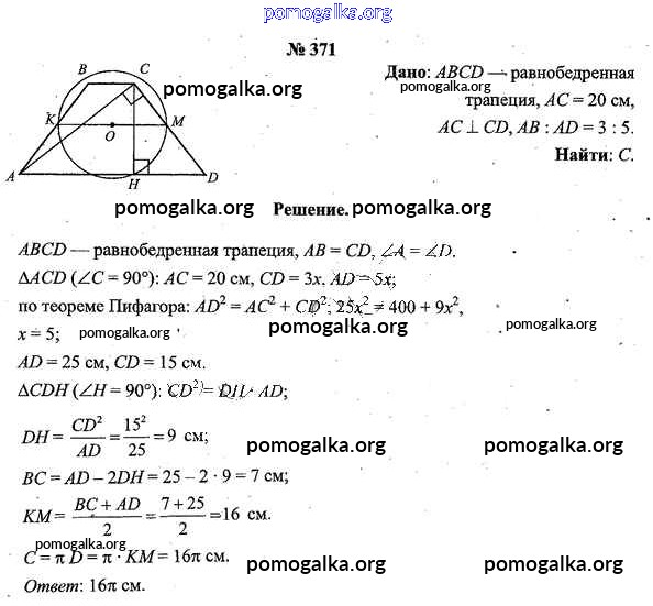 Готовые ответы - Геометрия 9 класс Шлыков В.В. - задача 371