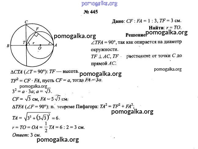 Готовые ответы - Геометрия 9 класс Шлыков В.В. - задача 445