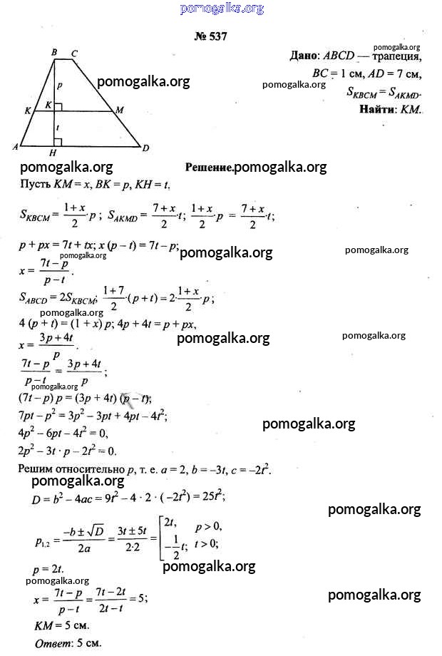 Готовые ответы - Геометрия 9 класс Шлыков В.В. - задача 537