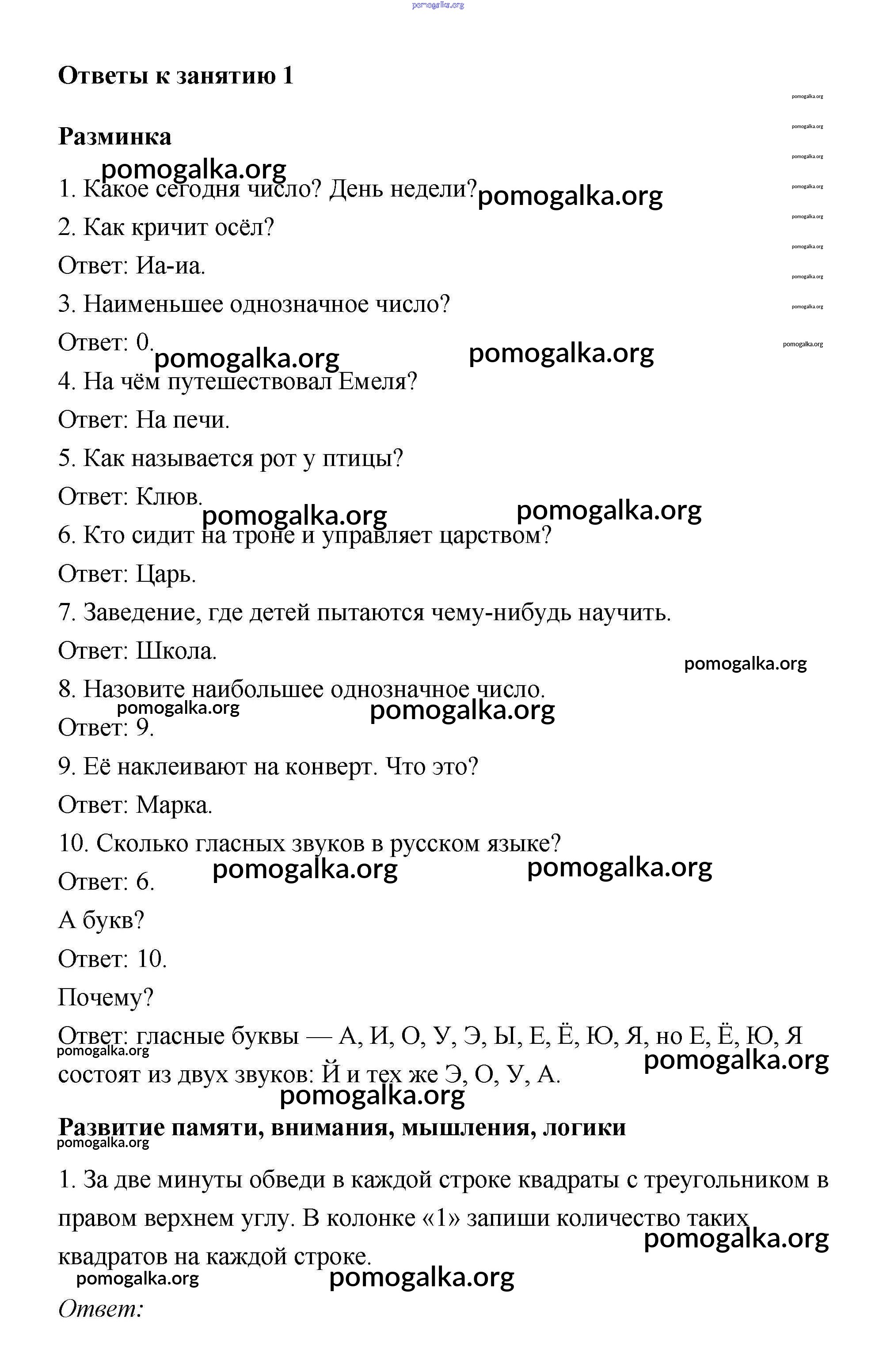 Готовые ответы - Умникам и умницам 2 класс рабочая тетрадь Холодова - урок 1
