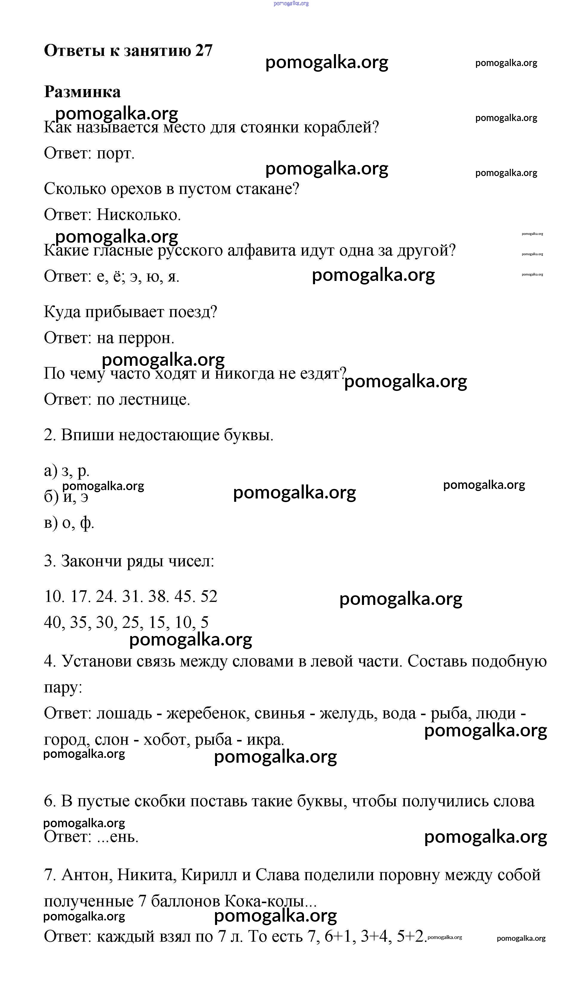 Готовые ответы - Умникам и умницам 2 класс рабочая тетрадь Холодова - урок 27