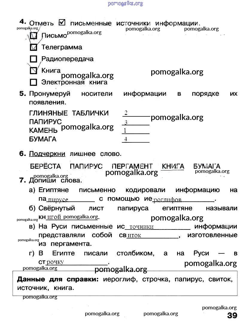 Готовые ответы - Информатика 2 класс рабочая тетрадь Матвеева Н.В. - §8 часть 1 стр. 39