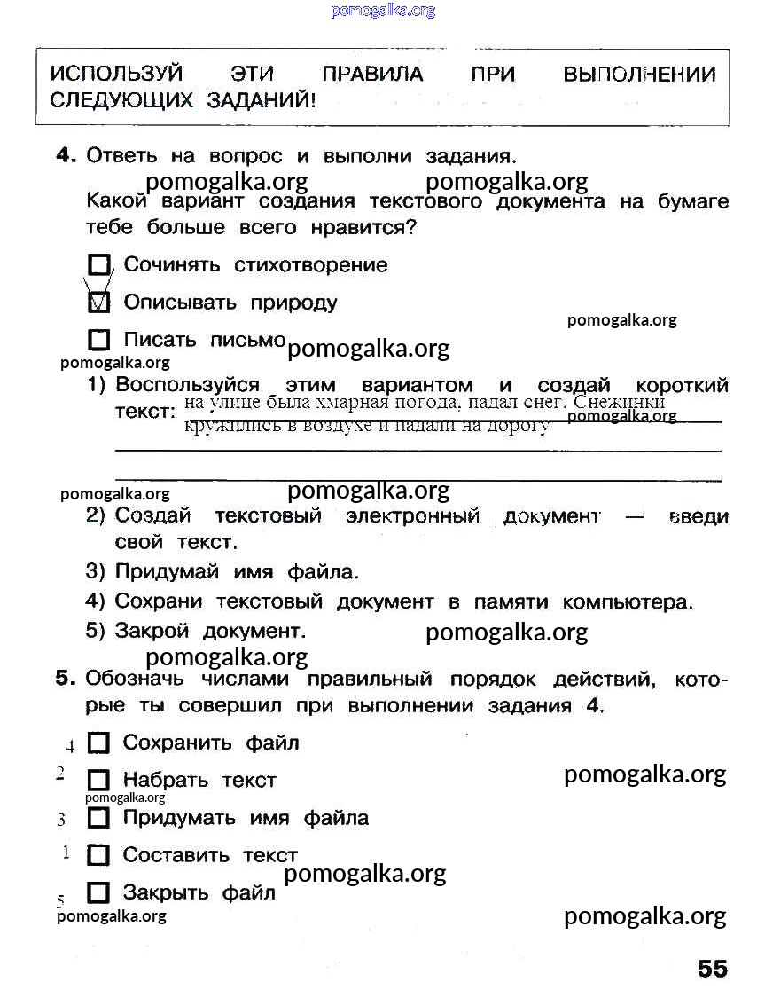 Готовые ответы - Информатика 2 класс рабочая тетрадь Матвеева Н.В. - §19 часть 2 стр. 55