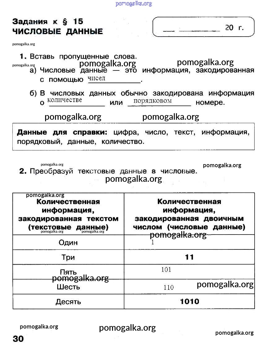 Готовые ответы - Информатика 2 класс рабочая тетрадь Матвеева Н.В. - §15 часть 2 стр. 30