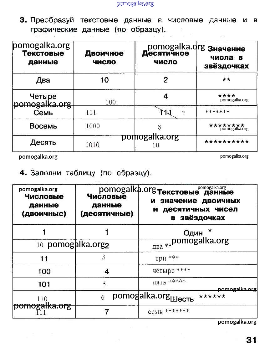 Готовые ответы - Информатика 2 класс рабочая тетрадь Матвеева Н.В. - §15 часть 2 стр. 31
