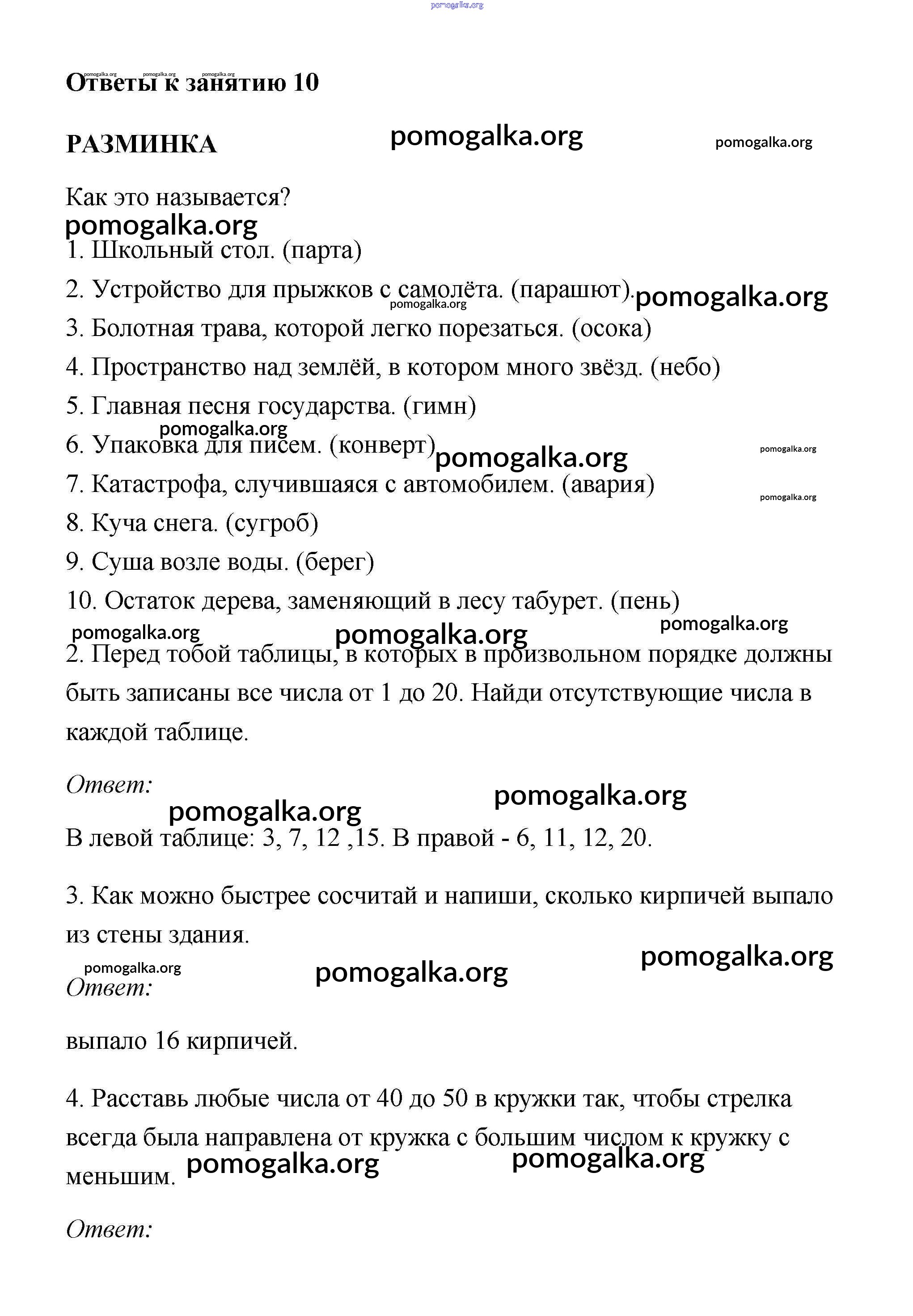 Готовые ответы - Юным умникам и умницам 3 класс рабочая тетрадь Холодова - урок 10