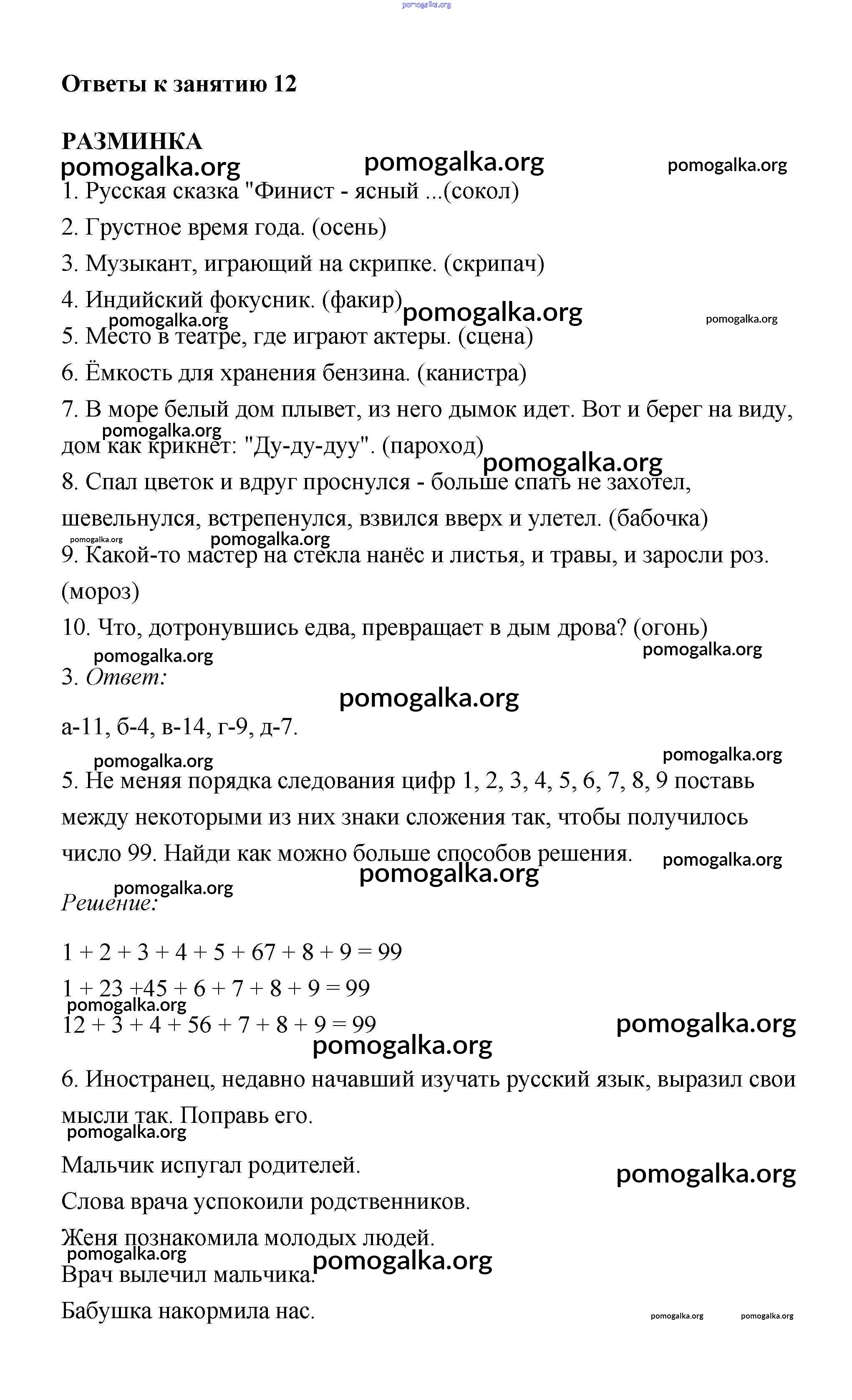 Готовые ответы - Юным умникам и умницам 3 класс рабочая тетрадь Холодова - урок 12