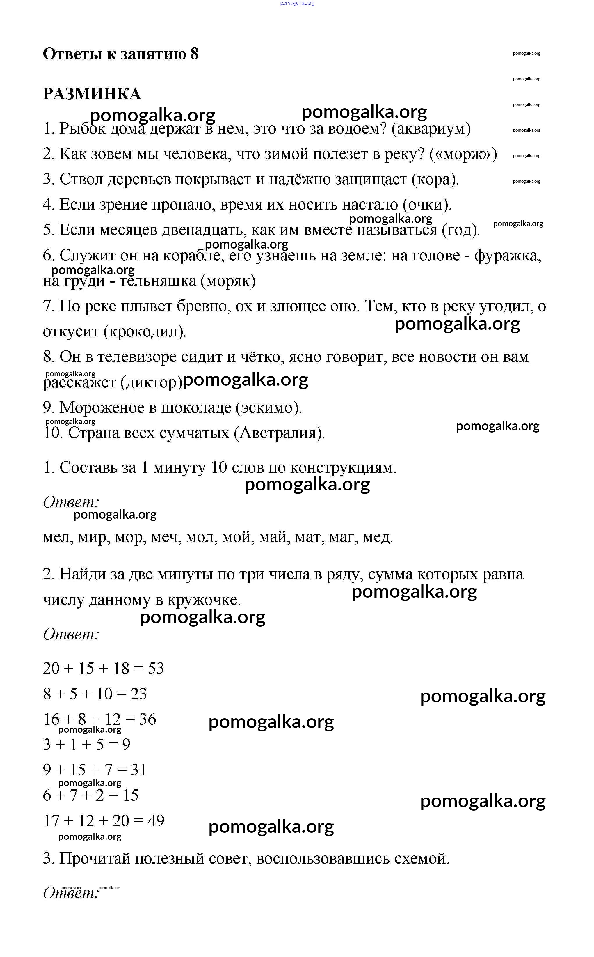 Готовые ответы - Юным умникам и умницам 3 класс рабочая тетрадь Холодова - урок 8