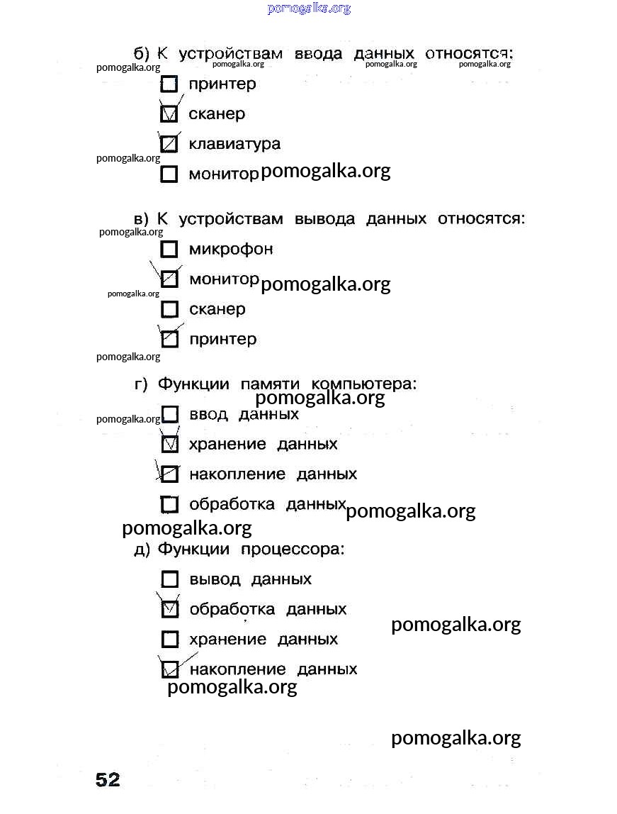 Готовые ответы - Информатика 3 класс рабочая тетрадь Матвеева Н.В. - часть 2. страницы 52