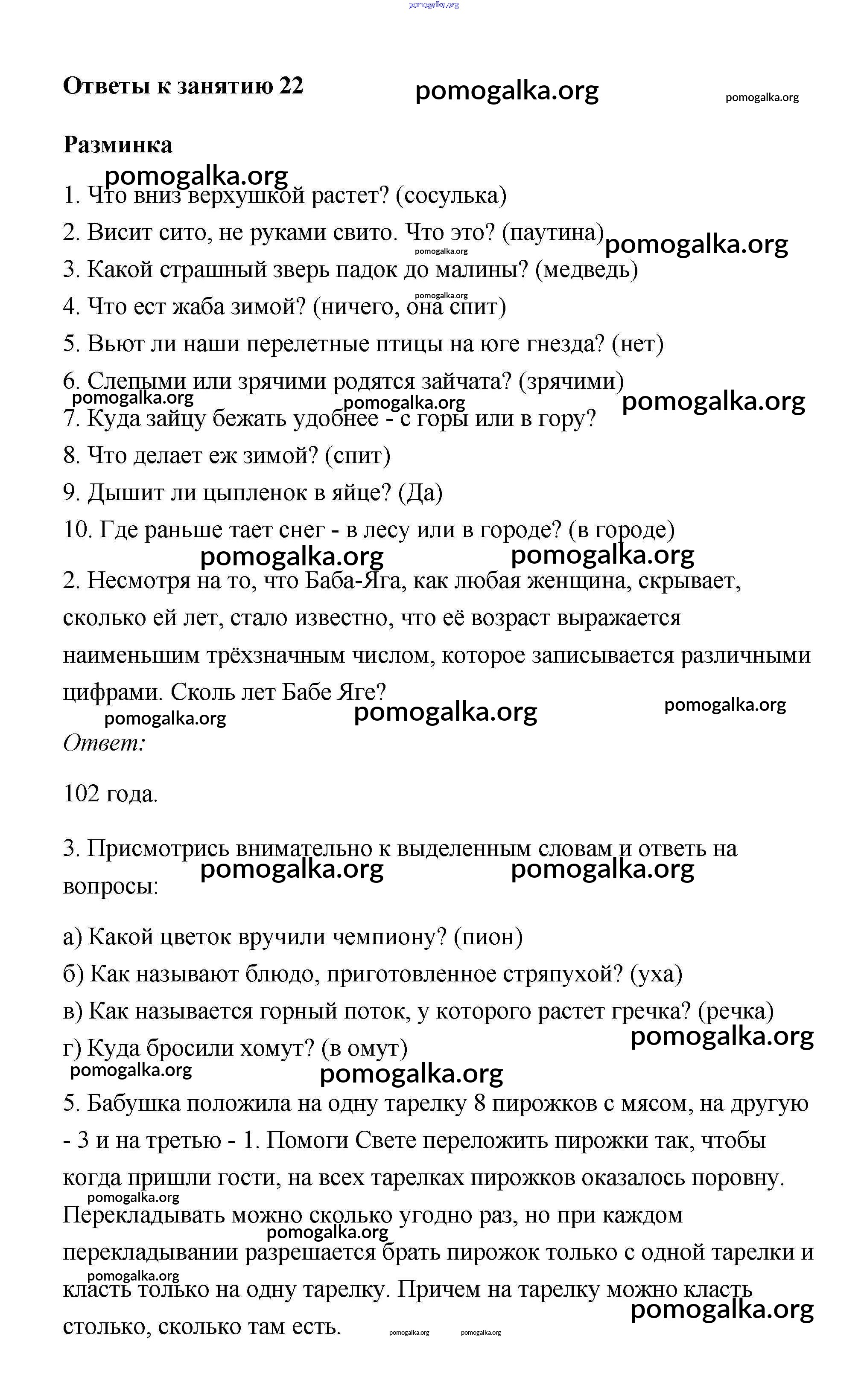 Готовые ответы - Юным умникам и умницам 4 класс рабочая тетрадь Холодова - урок 22
