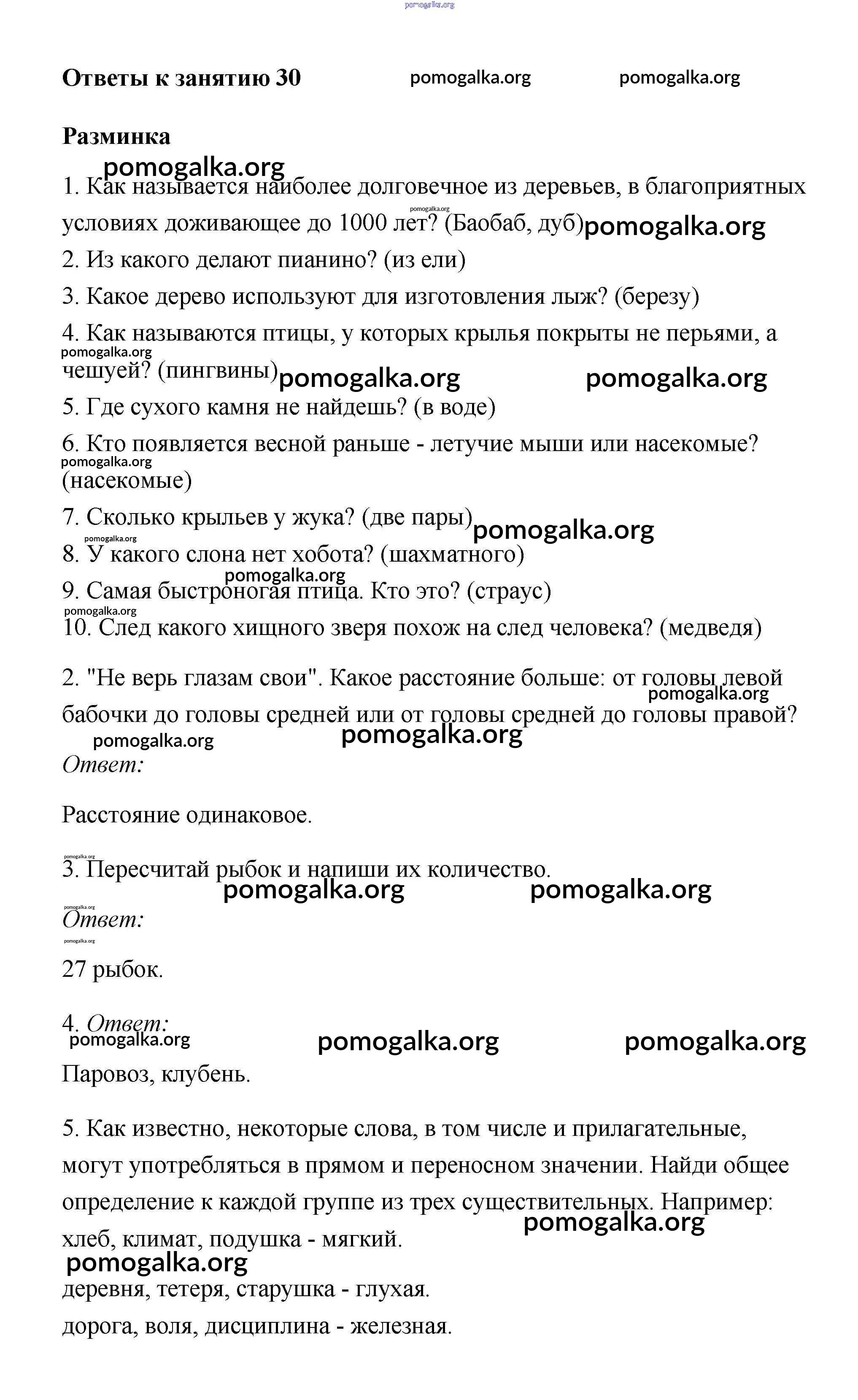 Готовые ответы - Юным умникам и умницам 4 класс рабочая тетрадь Холодова - урок 30