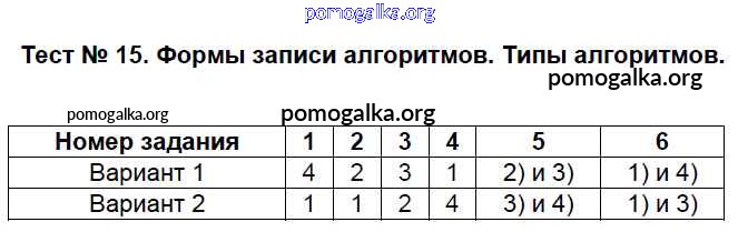 Готовые ответы - Информатика 6 класс КИМ Масленикова О.Н. - тест 15