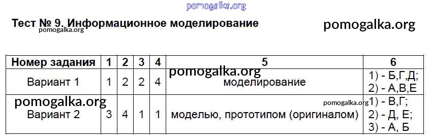 Готовые ответы - Информатика 6 класс КИМ Масленикова О.Н. - тест 9