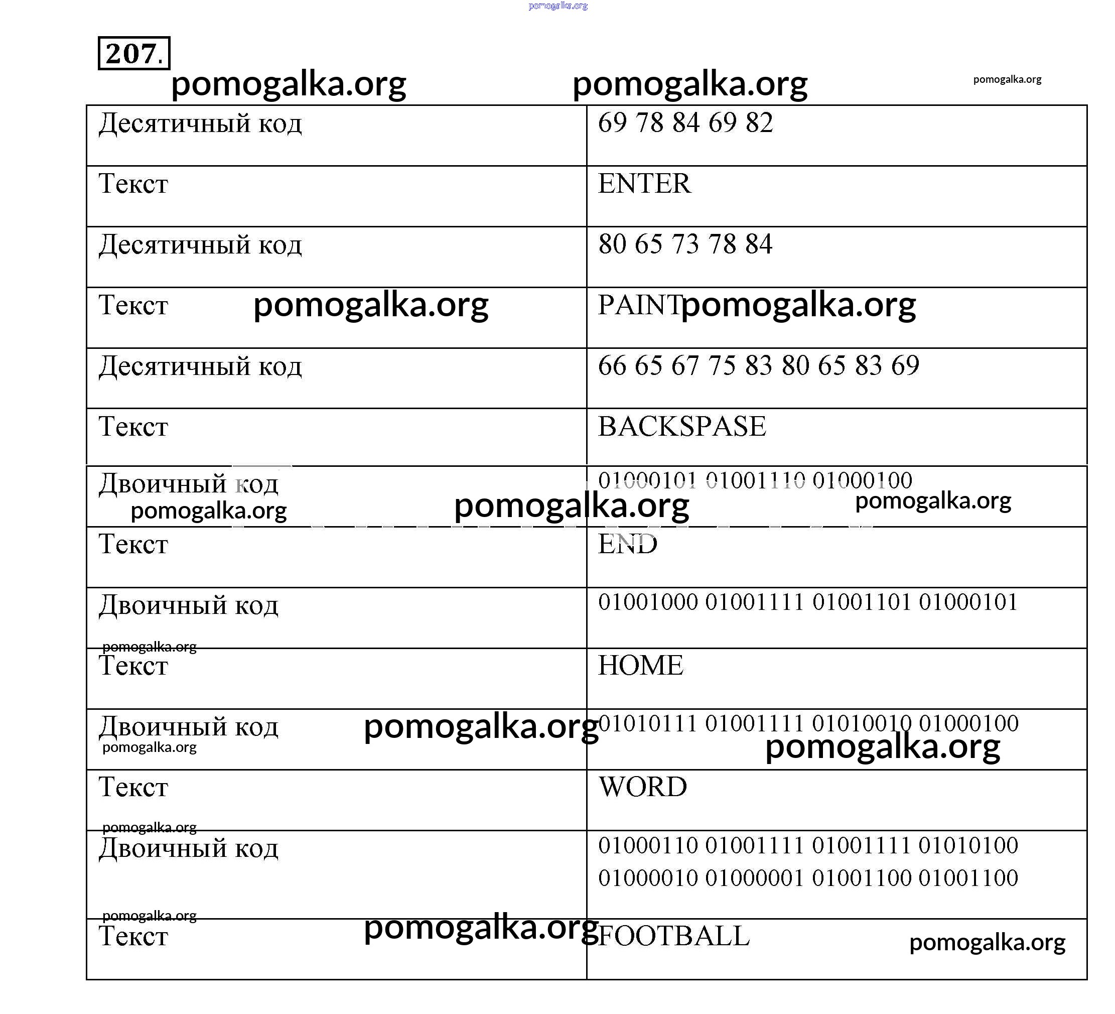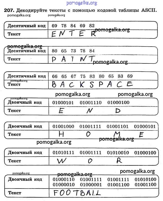 Готовые ответы - Информатика 7 класс рабочая тетрадь Босова Л.Л. - задание 207