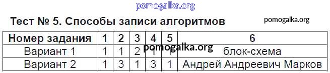 Готовые ответы - Информатика 8 класс контрольно-измерительные материалы Масленикова О.Н. - тест 5