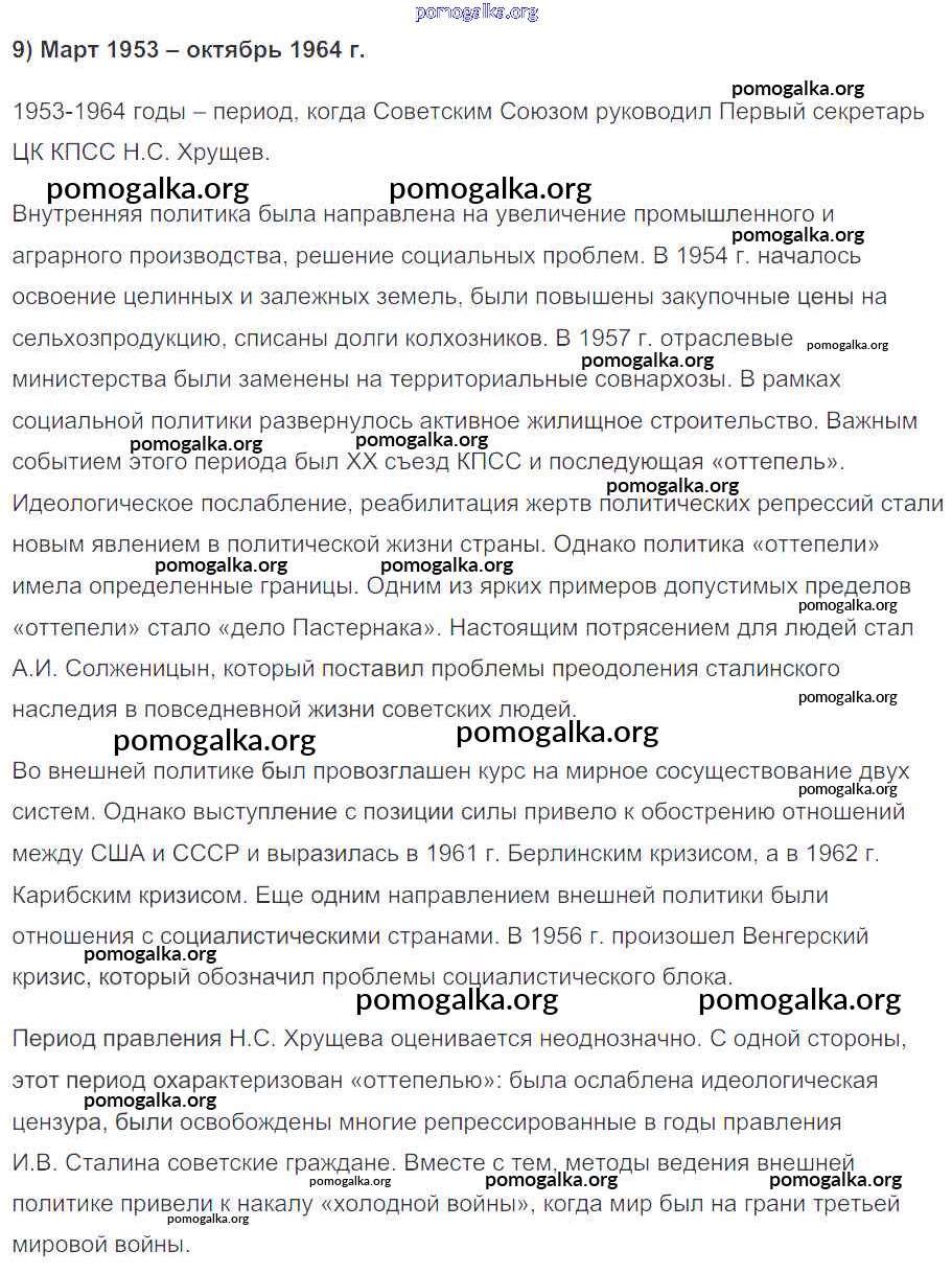 Готовые ответы - История России 10 класс контрольные работы Артасов И.А. - творческие задания 9