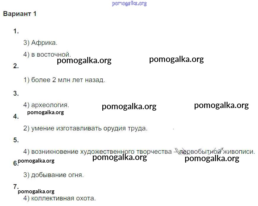 Готовые ответы - Всеобщая история Древнего мира 5 класс проверочные и контрольные работы Крючкова Е.А. - пр глава-1 Вариант №1